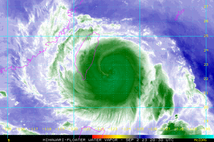 根據中央氣象局今天(3日)中午最新觀測資料,中度颱風海葵過去3小時強度略為增強。天氣風險公司天氣分析師吳聖宇表示,海葵衝刺,台東市以北到成功鎮一帶氣壓驟降中,下午準備在這邊登陸。