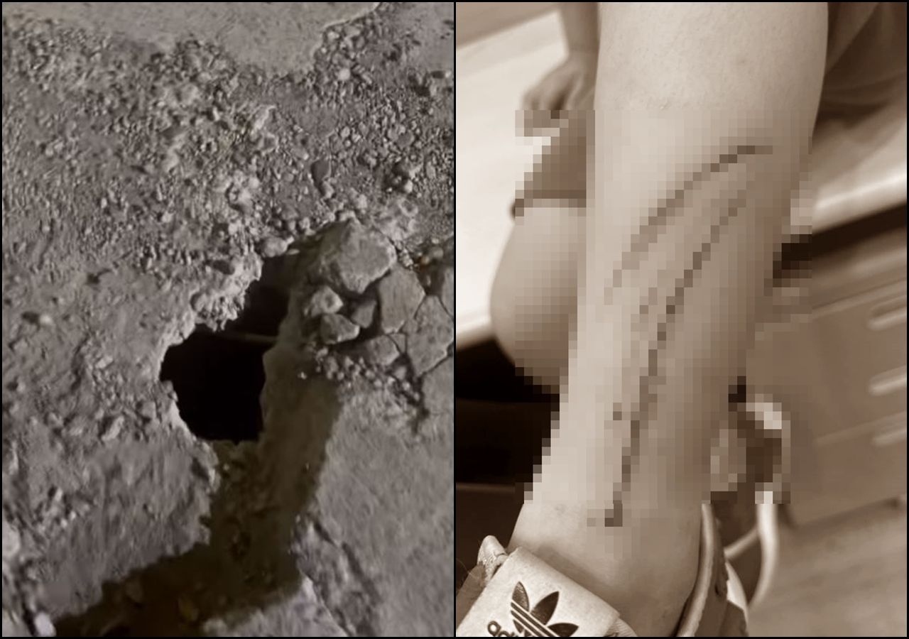 照片中可以看見,路面坑洞的直徑大約15公分,女童的腳剛好可以通過,由於邊緣的水泥非常粗糙,導致女童的腳被刮出3道血痕。其他網友看了照片後紛紛表示,「誇張,這種環境太不友善了」、「一定很痛,祝早日康復」、「那個水泥鋪的亂七八糟」、「孩子還好嗎,也太危險」、「好扯喔」。