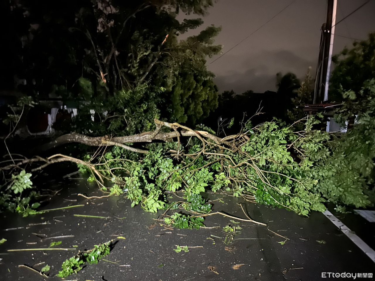 ▲路樹倒塌造成電路短路,旗山、內門地區總共有3萬多戶停電 。(圖/記者吳奕靖翻攝)
