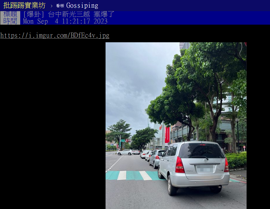 ▲有人貼出台中新光三越車潮照。(圖/翻攝自PTT)