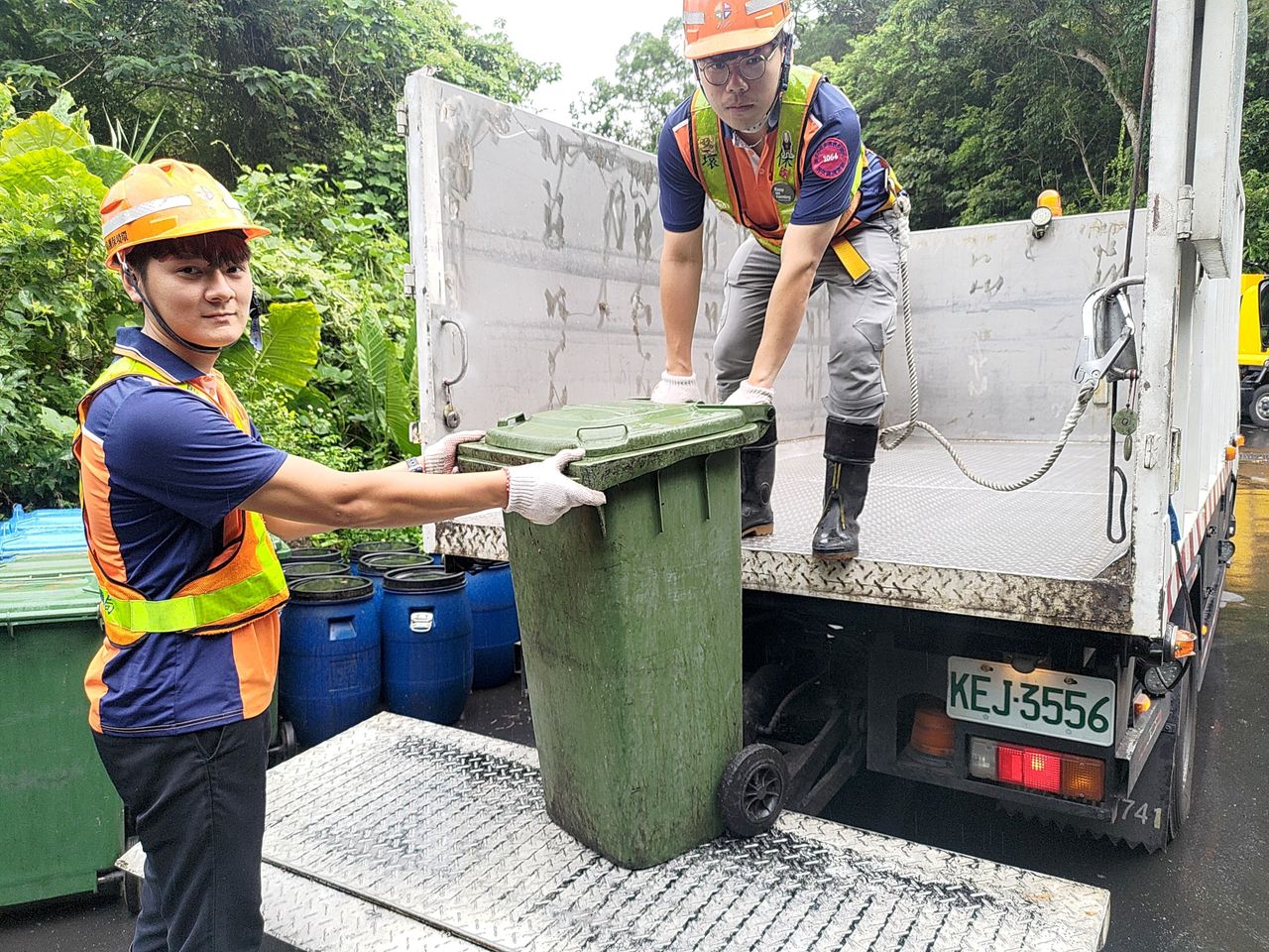 ▲新北環保局深坑區清潔隊2名廚餘收運隊員見義勇為制伏歹徒。(圖/新北市政府提供,下同)