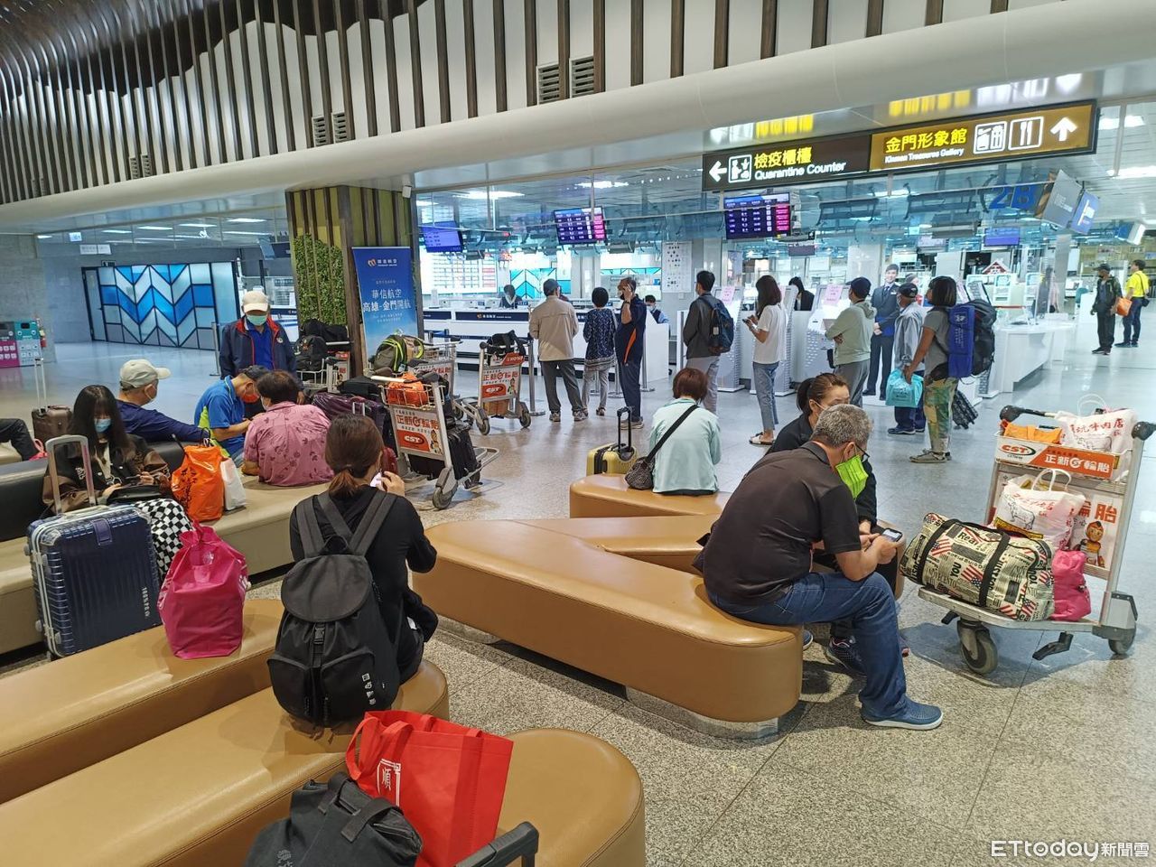 金門航空站指出,華信航空取消中午12點前從台灣本島高雄、台中、松山往金門等航班;立榮航空取消中午12點前從台灣本島高雄、台中、台南、松山往返金門的航班,其餘航班均維持正常起降。