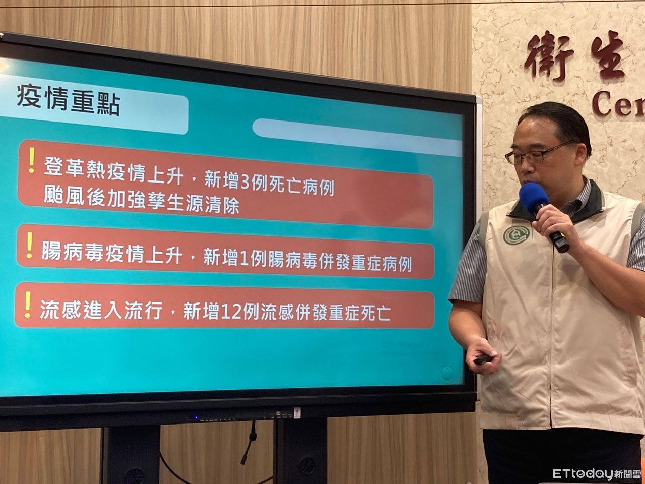 ▲疾管署疫情中心主任郭宏偉說明最新疫情。(圖/記者洪巧藍攝)