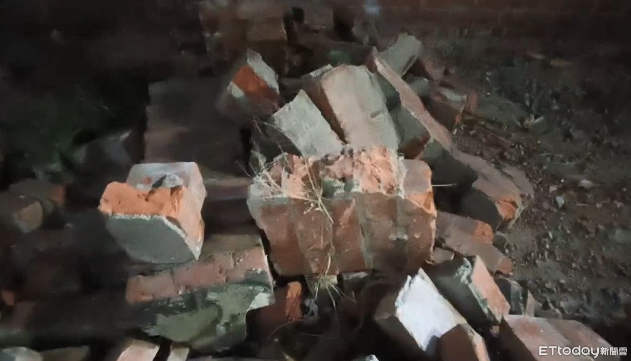 嘉義縣5.5地震發生後,民雄鄉山中村傳出有民宅「圍牆倒塌」,曝光的照片可以看見,倒塌的紅磚圍牆旁邊就是柏油路面,現場磚頭碎片散落一地,所幸倒塌當下沒有人在現場,所幸沒有人員受傷。