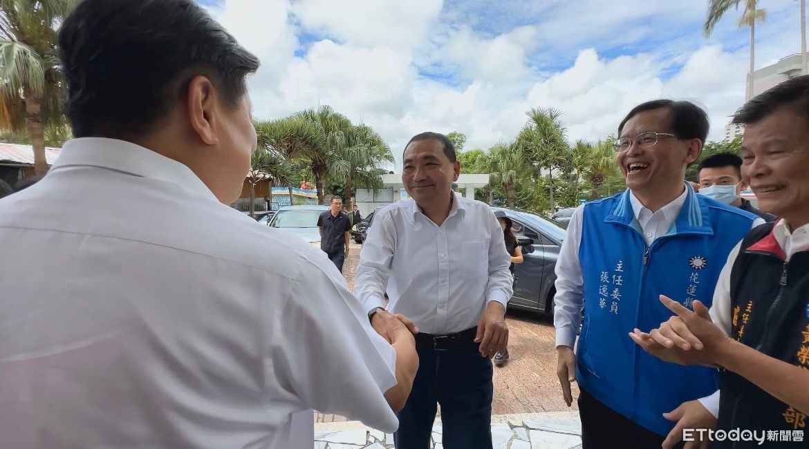 侯友宜一早先到花蓮縣政府,縣長徐榛蔚親自在門口迎接,隨後即前往國民黨花蓮縣黨部,在侯抵達現場前,傅崐萁也在門口等候。兩人見到彼此也馬上握手致意,氣氛融洽,到會場後傅崐萁也帶侯友宜一一與黨籍幹部握手致意。