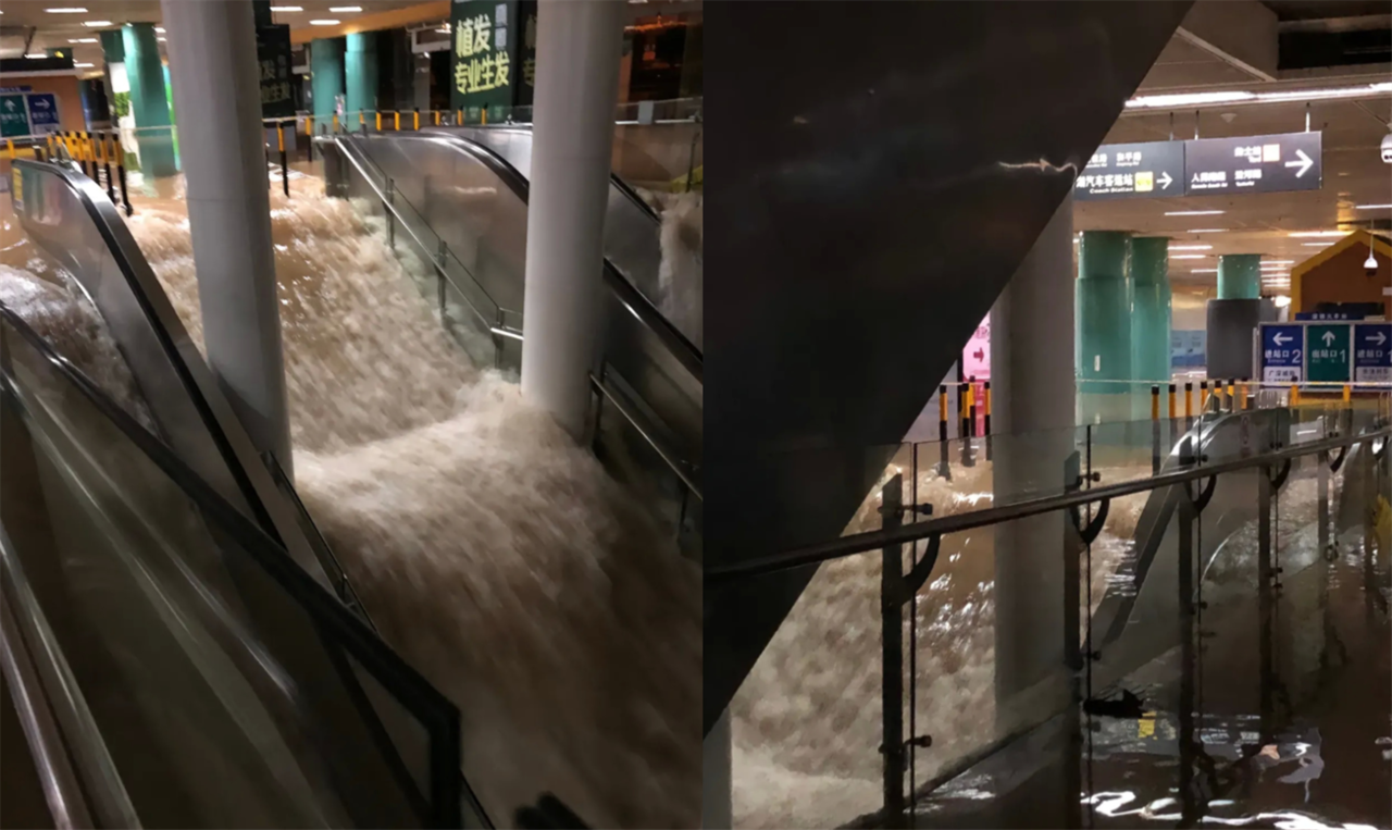 ▲深圳火車站地下一樓被淹沒。(圖/翻攝自影片)