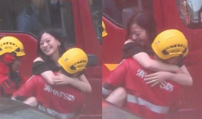 從HOY TV拍攝的片段可見,一名女子從泡水的轎車中被救出,整個人雙腿打開,攀抱在消防員身上,還持續張嘴大笑,難掩興奮情緒。該段畫面在微博上瘋傳,成為網友們近2天的熱門話題。