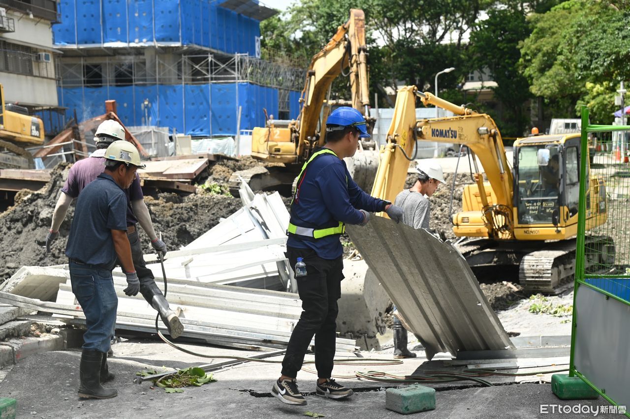▲台北市長蔣萬安與副市長李四川視察台北市大直街94巷民宅房屋傾斜下陷現場,左為市議員陳怡君。(圖/記者李毓康攝)