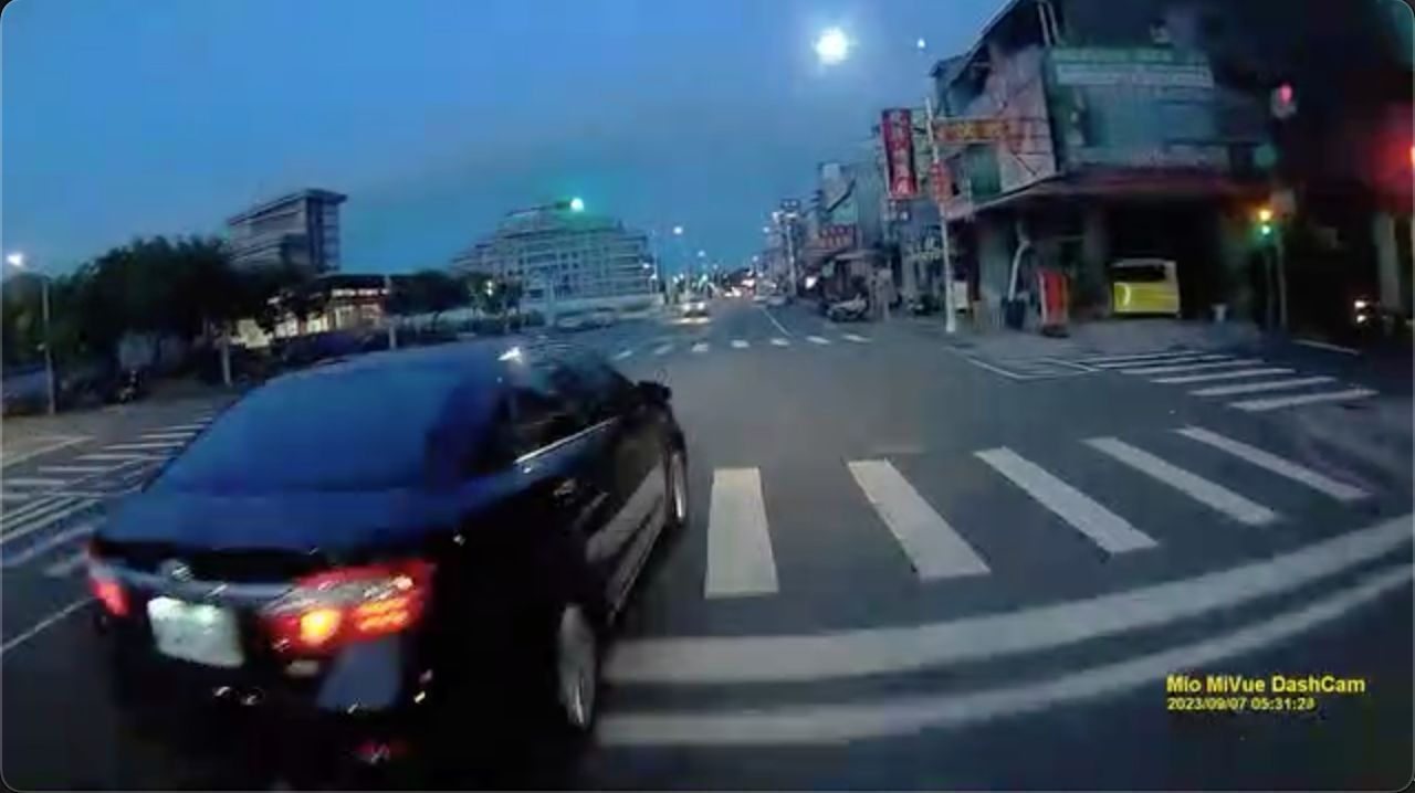該名男騎士將行車紀錄器畫面上傳到臉書社團「爆怨2公社」,影片中可見,他5點30分左右要騎到路口時,傳來長按喇叭的聲音,接著一輛黑色轎車從後方超車,經過斑馬線後,前方明明沒車且是綠燈,卻又莫名急煞,造成他必須跟著停下。騎士不滿表示,「我只是安分騎著而已!何必這樣了!氣到罵髒話」。