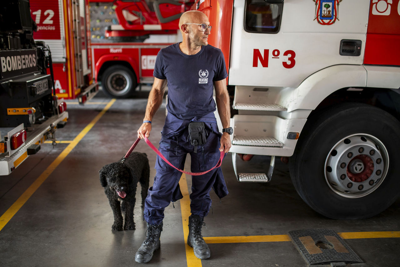 ▲▼消防員與救難犬同行,準備出發前往摩洛哥搜救。(圖/達志影像/美聯社,下同)
