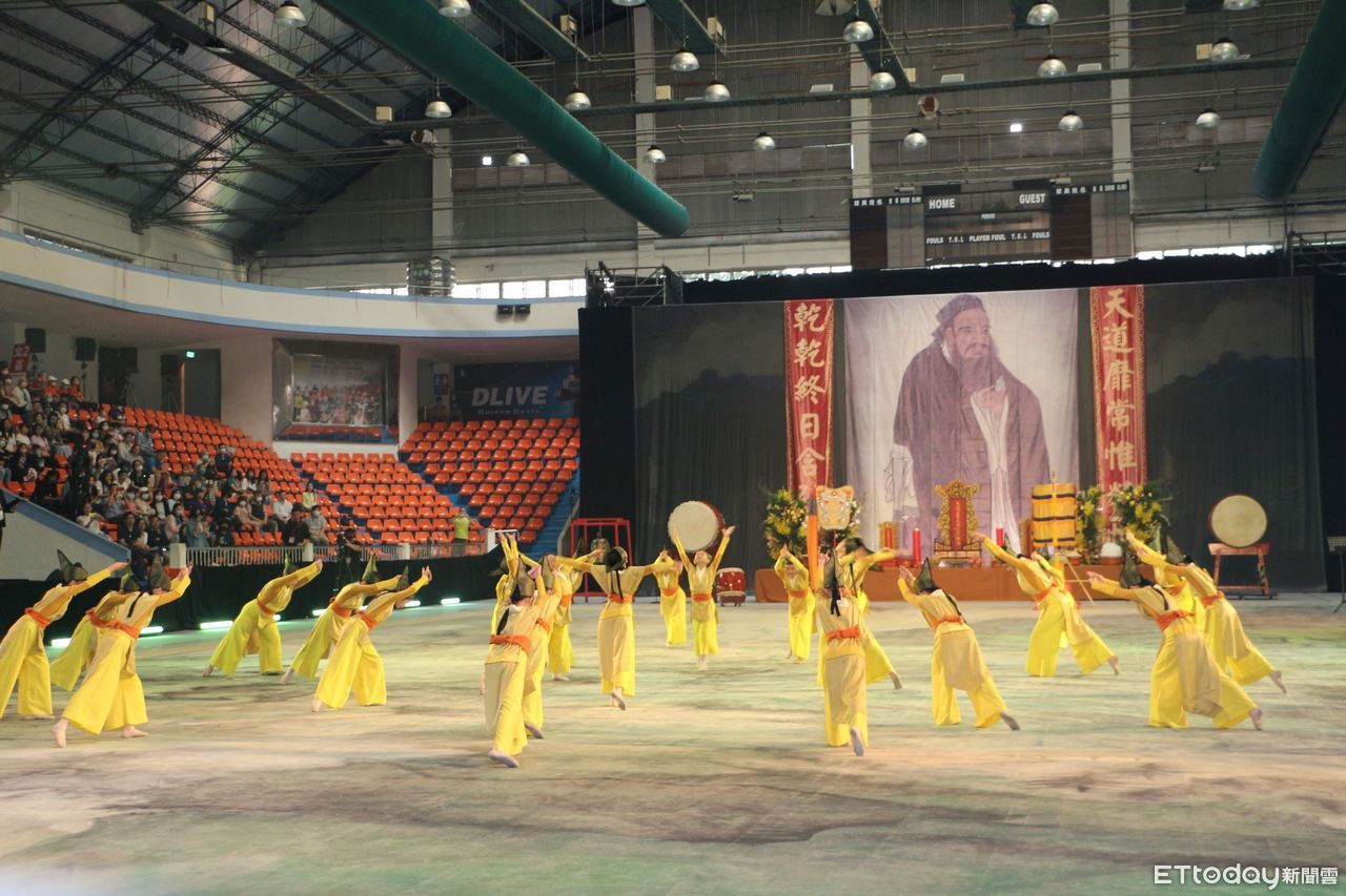 新北市教育局與中華民國三一寰宇文化協會今(10日)在板橋體育館舉行「大成至聖先師孔子2573週年誕辰釋奠禮暨2023年教師節敬師禮」,是全國唯一以古禮結合音樂、舞蹈、戲劇、燈光、影像等多元藝術演出的祭孔大典,現場逾2千人參與這場祭孔大典。