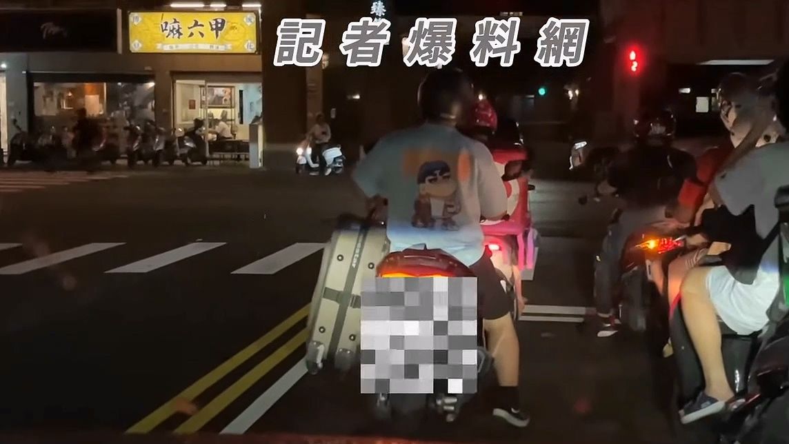 ▲台中一名騎士7日行經北區時,竟左手拎著行李箱騎車,警方表示可開罰600元罰鍰。(圖/翻攝記者爆料網,下同)