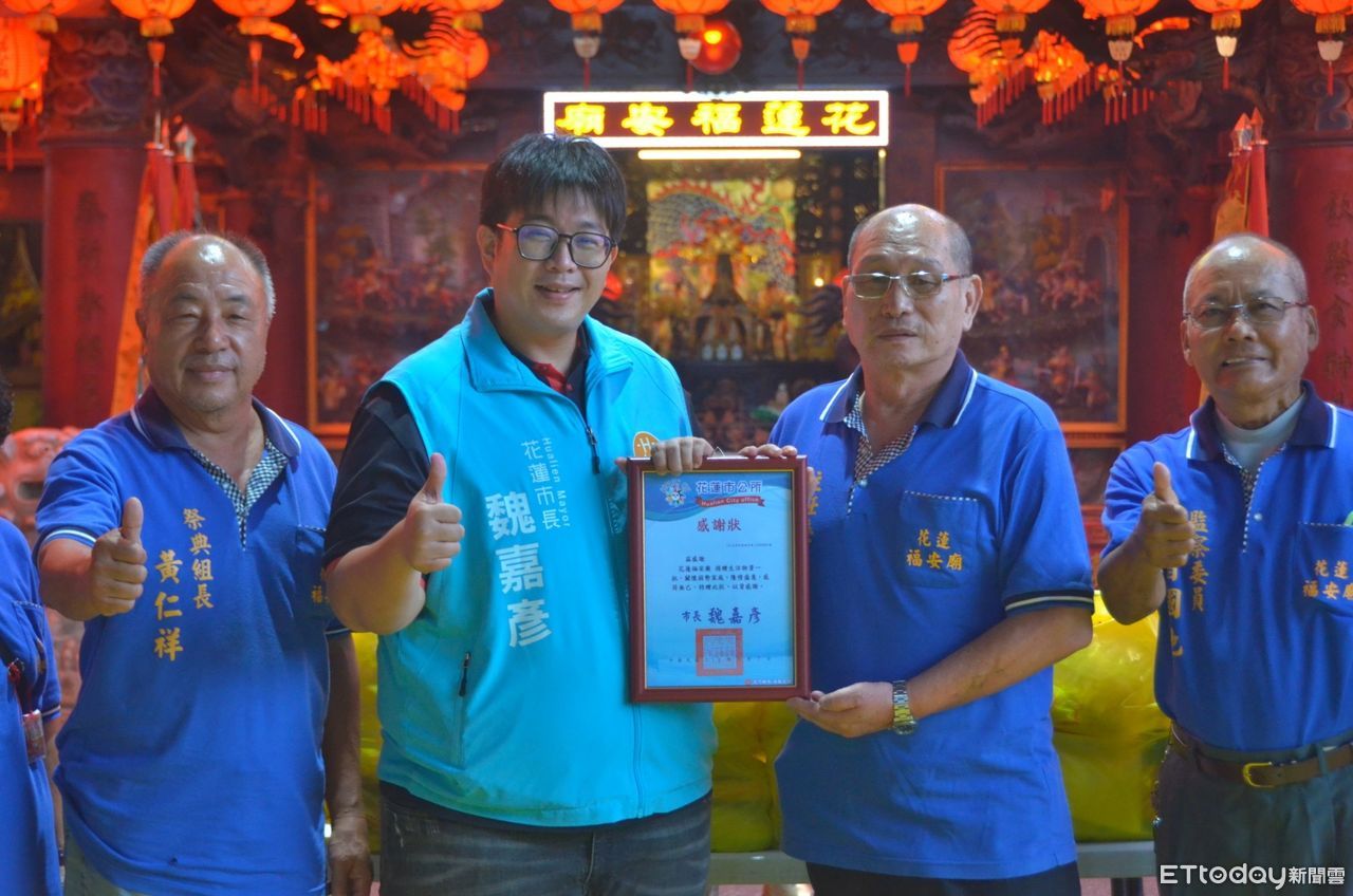 花蓮市福安廟日前舉辦普渡法會,透過廟方管理委員會及信眾大德支持,將129份物資捐給花蓮市公所。市長魏嘉彥日前專程前往向廟方致謝,並頒發感謝狀,他也號召社會各界,當行有餘力時,可以透過慈愛基金捐款和物資捐贈,持續向弱勢朋友投注幫助與關懷。