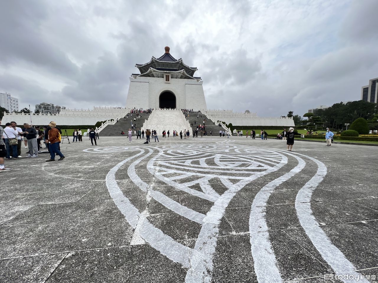 ▲中正紀念堂轉型議題再度浮上檯面,圖為法國藝術家Jordane Saget中正紀念堂即興創作。(資料照/記者楊惠琪攝)