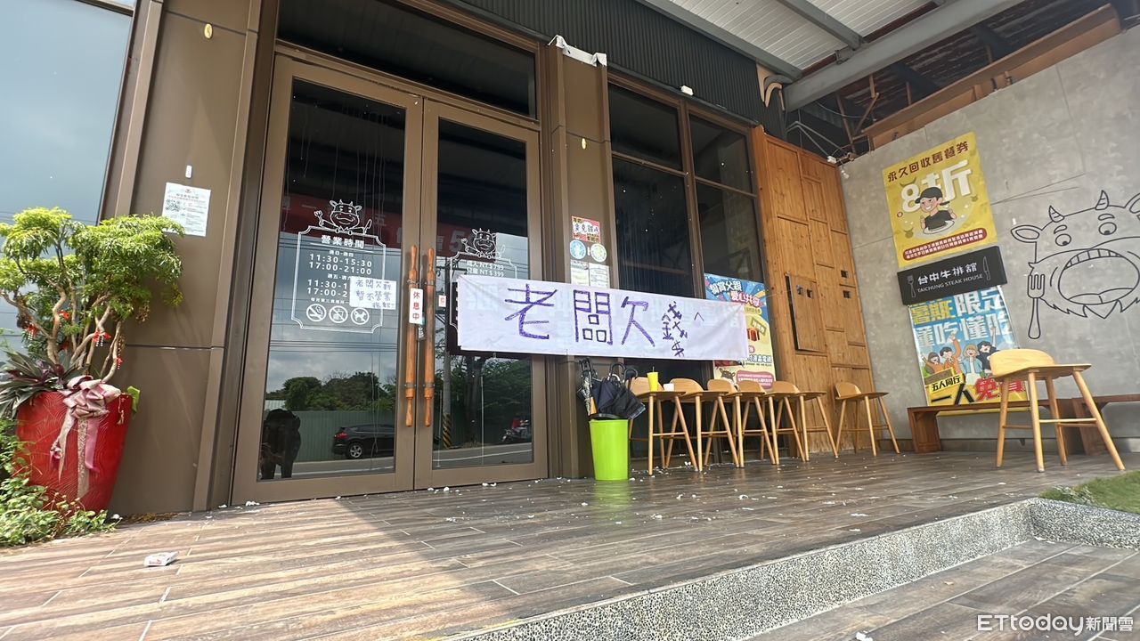 台中牛排館無預警倒閉,30多名員工控訴老闆欠薪,昨天店面也遭蛋洗、搬空設備。顧姓業者一度神隱後露面,直批「我發薪水的時候才是老闆,要改善時沒有人要聽我的!」也透露營收虧損3000萬,加上借貸已經燒光4500萬,已向品牌創始人曾媽致電,坦言「撐不下去了」,決定收攤。