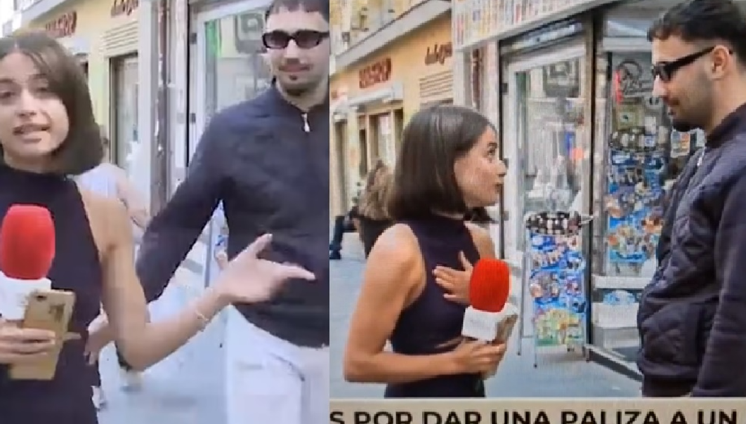 影片中可看到,女記者巴拉多12日在馬德里街頭報導一間商店時,一名戴著墨鏡男子突然出現在她身後,還用手摸了她的臀部,她當下立即回頭制止男子,告訴對方「我們正在和電視台直播」,並維持專業表現、試圖繼續播報新聞,然而男子卻繼續騷擾她。