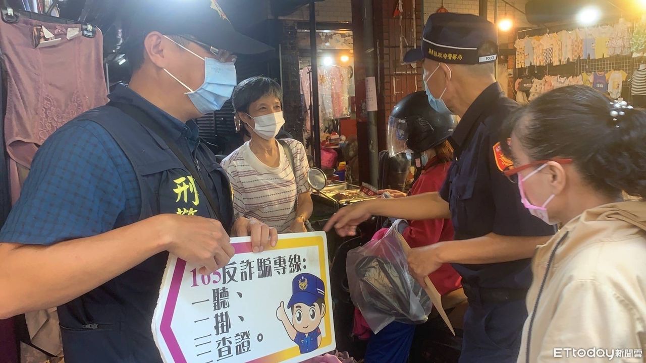 ▲東港警分局副分局長張俊儒到市場宣導識詐、打詐 。(圖/記者陳崑福翻攝)