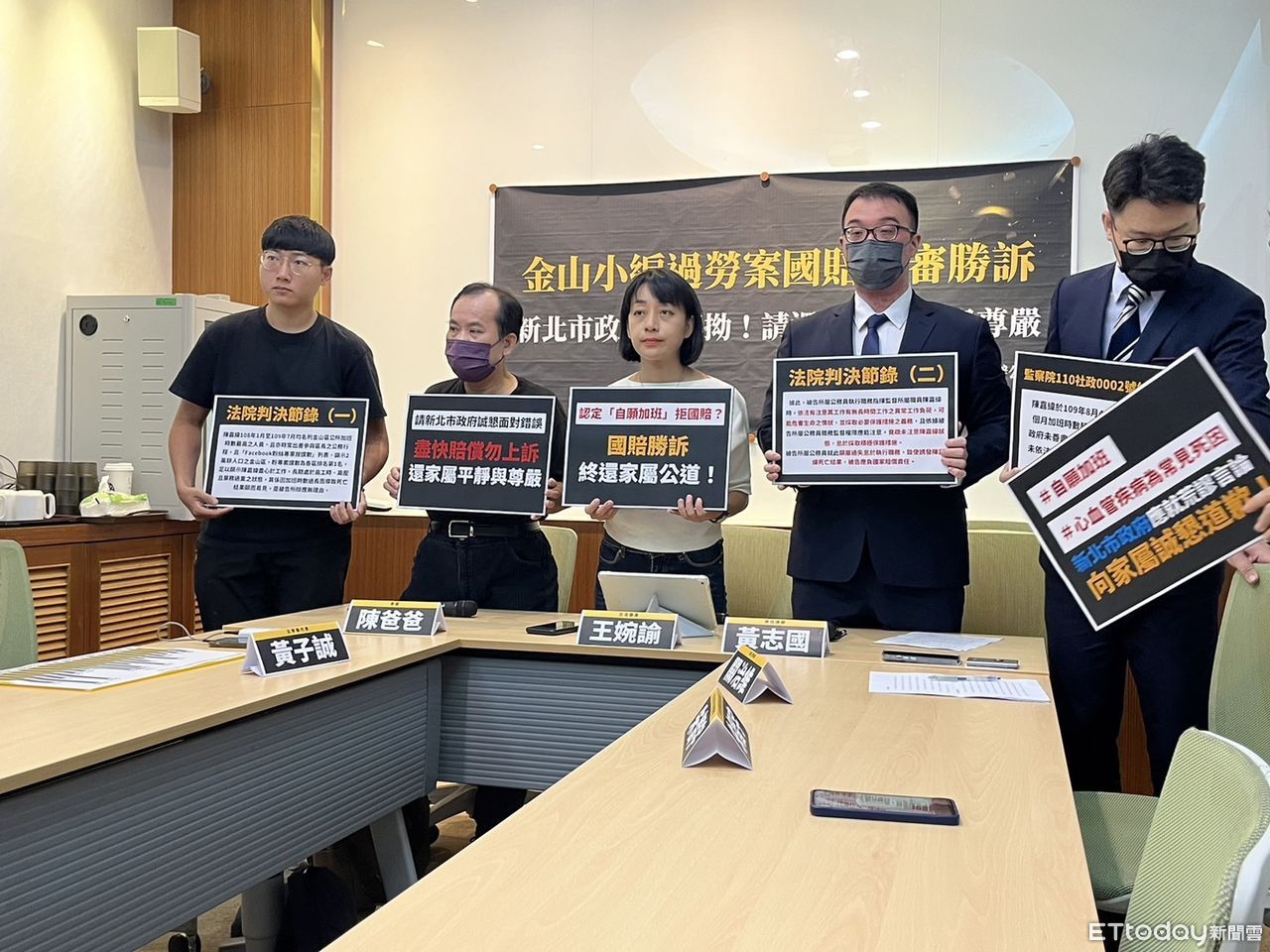 ▲「金山小編過勞案國賠一審勝訴,新北市政府別再凹 請還家屬平靜與尊嚴」記者會。(圖/記者杜冠霖攝)