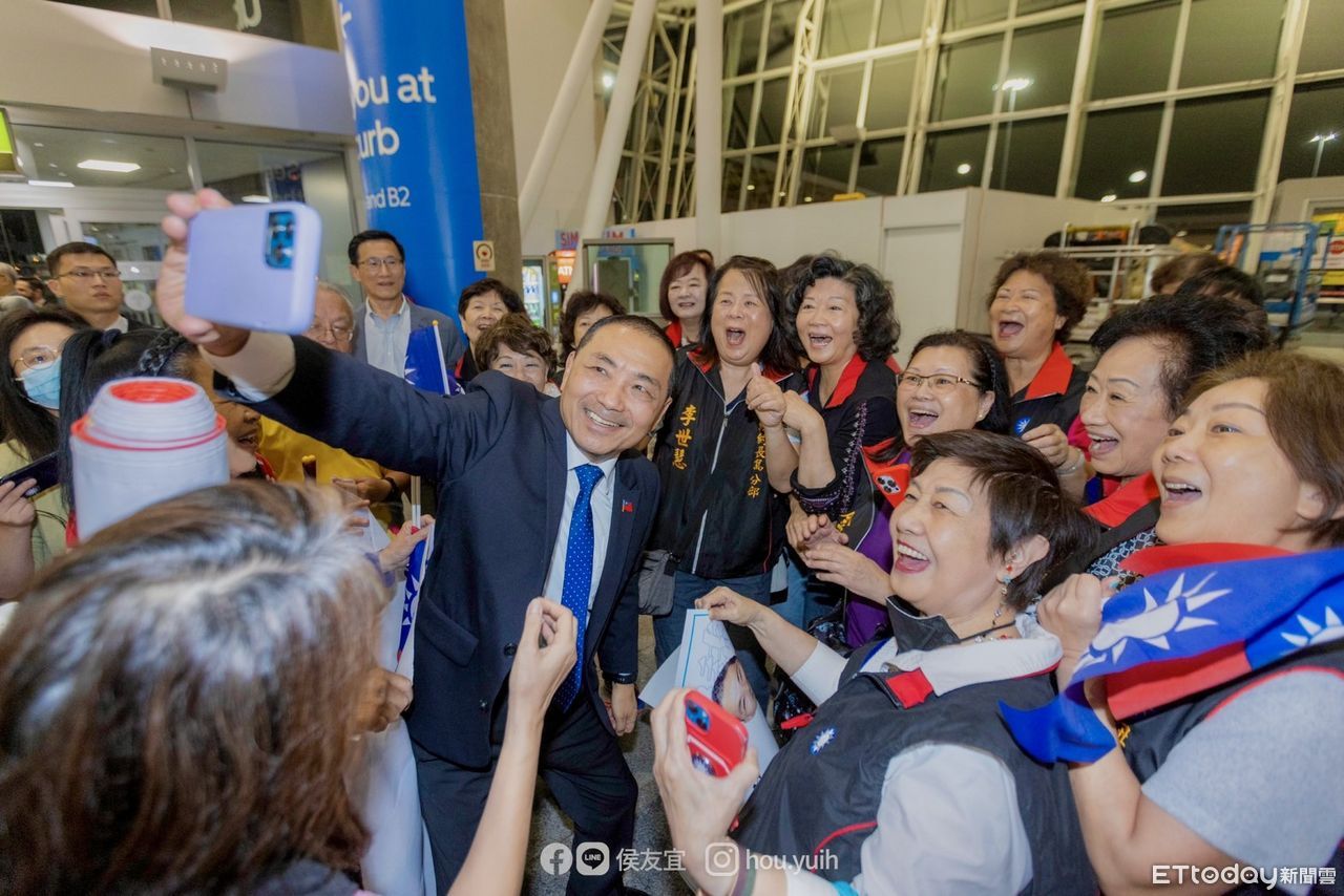 國民黨總統參選人侯友宜台北時間14日下午啟程訪美,在美東時間14日晚間7時41分,抵達紐約約翰甘迺迪國際機場,上百位僑胞熱情接機,現場高呼「侯友宜凍蒜!」、「友宜友宜友宜,凍蒜凍蒜凍蒜!」只見侯友宜臉上露出燦爛笑容,還開心跟僑胞們合影自拍,展現親和力,場面歡欣鼓舞。侯友宜此行目的主要是向美方傳達捍衛民主、自由的信念及維護台海區域穩定和平的決心。侯友宜15日起將展開馬拉松式參訪,公開行程就有7場,堪稱鐵人行程。