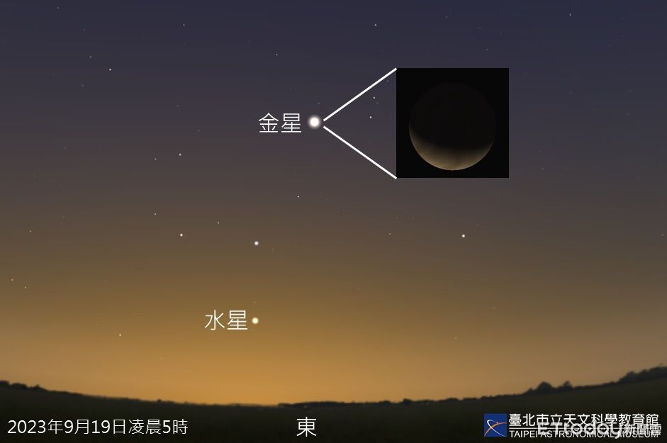 太陽系八大行星中最明亮的金星,將在下周二(19日)達到今年第二次、也是最後一次的最大亮度。台北市立天文科學教育館今(15日)指出,其耀眼的程度甚至可在暗處對物成影,預計在當天凌晨3時左右從東方升起後,金星將是全天空最亮的明星,想不看到都很難,建議民眾以30倍左右的望遠鏡,還可以看出其如眉月般的外觀。