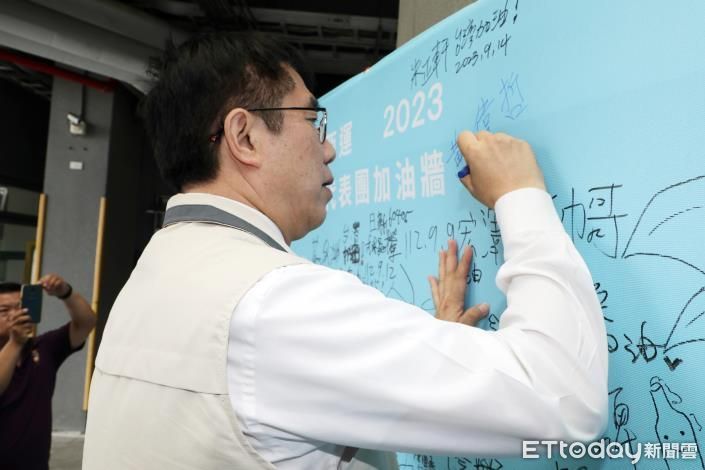 黃偉哲表示,杭州亞運即將在9月23日開賽,代表台灣出賽的524位選手中,台南市選手就占33位,他們都是台南之光、自基層培訓育成的菁英好手,期待各選手超越自我、盡情享受競賽場上的過程,也祝福賽事順利、每位選手充分綻放光芒,贏得佳績。此外,他也邀請鄉親到加油牆動手寫下對選手的祝福,為正在閉門集訓、即將遠赴杭州出賽的選手打氣加油。