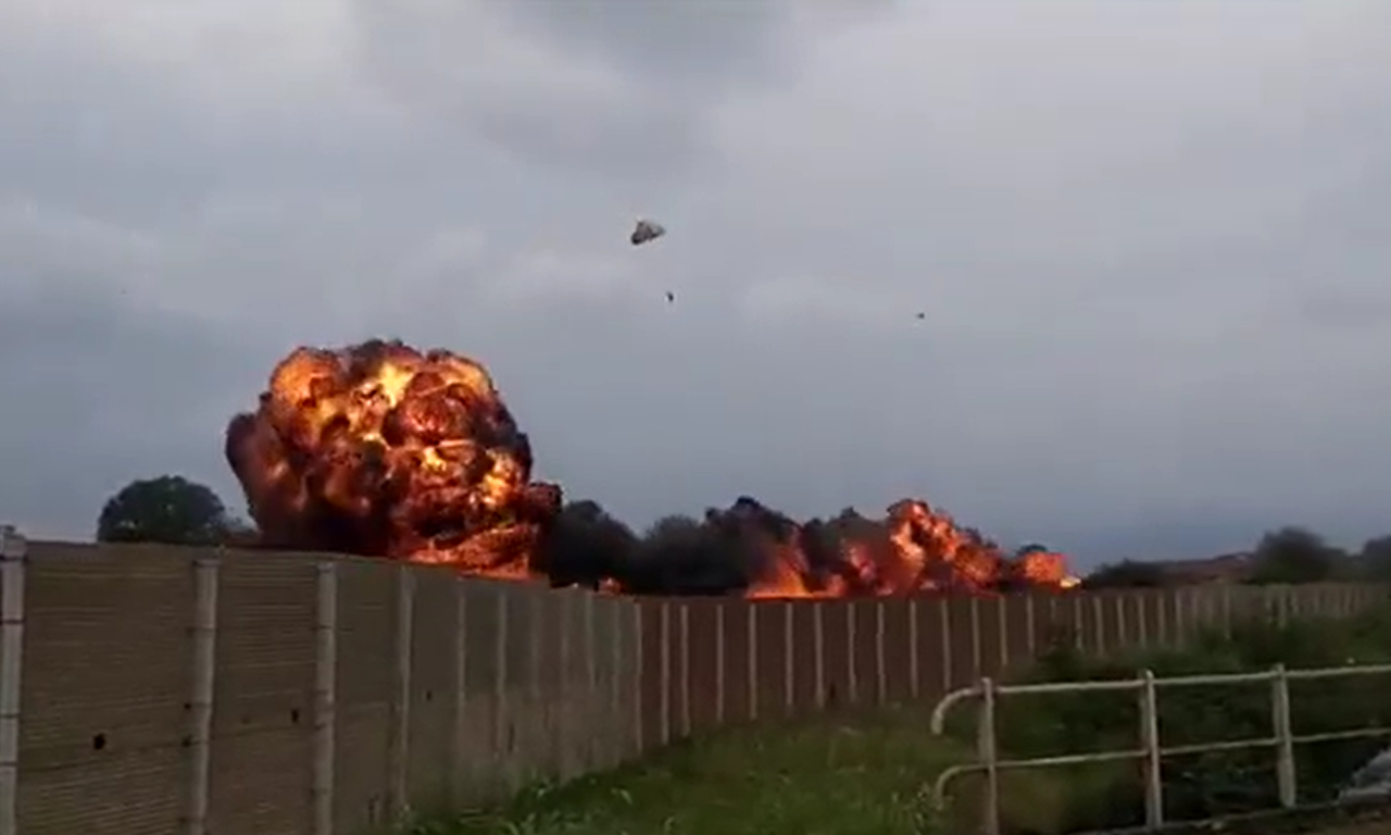 影片顯示,當時義大利空軍雜技飛行隊「Frecce Tricolori」正分成2個小隊,進行低空飛行掠過土地上空,但一架飛機突然落隊偏離航道,隨即機頭向下撞上草地,高速的慣性使得飛機在地上滑行,同時伴隨大量火球。畫面可見飛行員在飛機墜地前及時彈跳逃生。