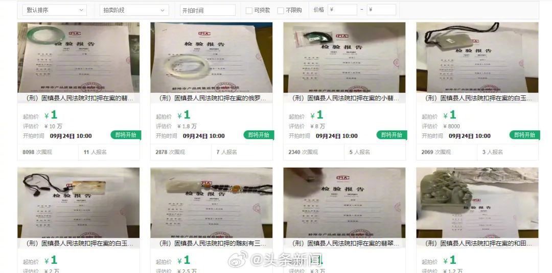 目前拍賣網站上已有8000多人圍觀、700多人設置競拍提醒以及11人報名參加,其中最受關注的就是翡翠手鐲,大家都希望能用低價將這些物品帶回家。