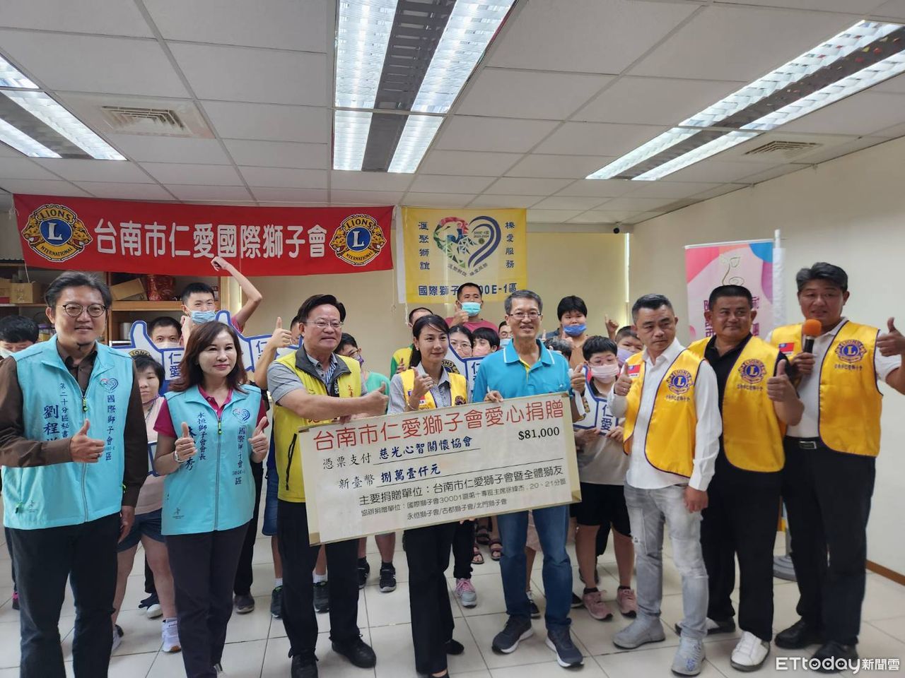 ▲台南市仁愛獅子會等多位獅友,19日下午2時許,在西港郵局2樓,捐助「台南市慈光心智關懷協會」,台南市議員陳昆和,亦專程出席致意。(圖/記者林東良翻攝,下同)