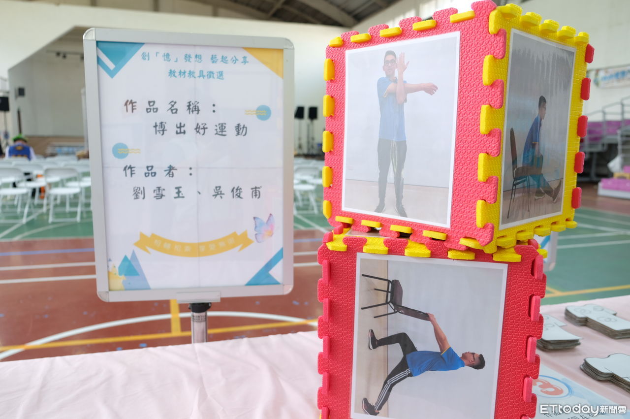 現場還展示由屏基員工集思廣益設計發想的創意教具教材,像是將骰子的數字換成徒手運動由長輩投擲進行上下肢伸展及肌力訓練;仿日本綜藝節目的電電樂,訓練長輩手眼協調;仿撲克牌心臟病的玩法,將長輩熟悉的物件做成卡片,讓三至五位長輩一起玩,訓練長輩的反應能力及辨識能力,這些益智教材未來將運用在各長照服務據點讓長輩動腦也動手。