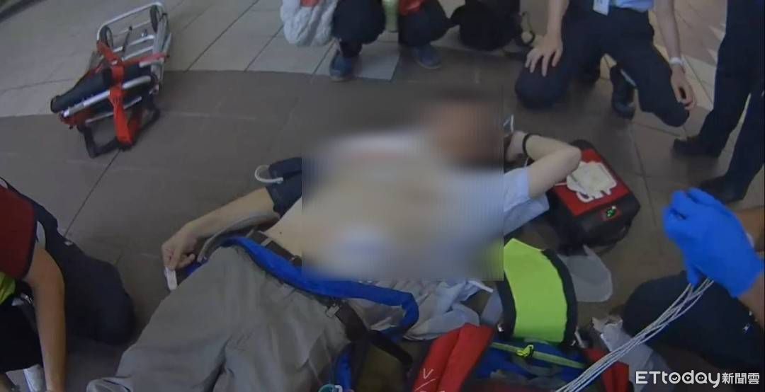 ▲新北男突倒臥捷運站命危,站務人員及救護人員合作成功救人一命 。(圖/記者戴上容翻攝)