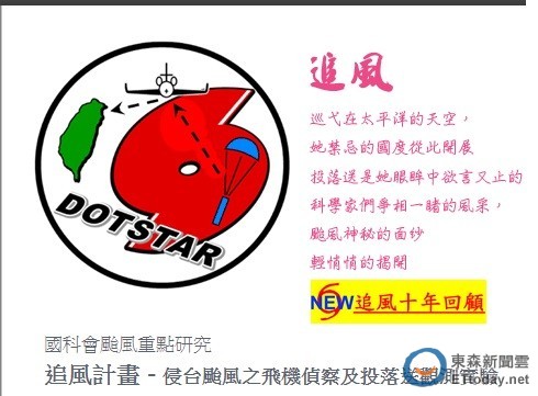 氣象局表示,這項計畫全名為「颱風飛機投落送觀測」,簡稱「追風計畫」,從2003年起進行至今已完成65次飛行觀測,今年度由中央氣象局、國家實驗研究院台灣颱風洪水研究中心、台灣大學及漢翔航空工業公司共同執行,為目前亞洲唯一應用飛機於颱風的觀測。