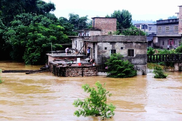 ▲尤特颱風肆虐廣東,一棟民房被洪水淹沒,屋主冒險收拾家當。(圖/取自CFP視覺中國)