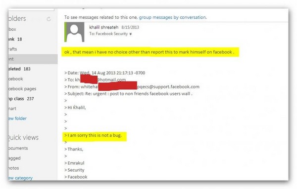 根據《ibtimes.com》報導指出,資安專家史瑞特(Khalil Shreateh)上周發現臉書這項重大漏洞,如果不盡快修正,任何人的臉書都可能被塞入大量廣告或病毒訊息,但他寫信給創辦人祖克伯(Mark Zuckerberg) ,對方卻以「這並不是個程式漏洞」搪塞,逼得他決定採用更激進的手段。