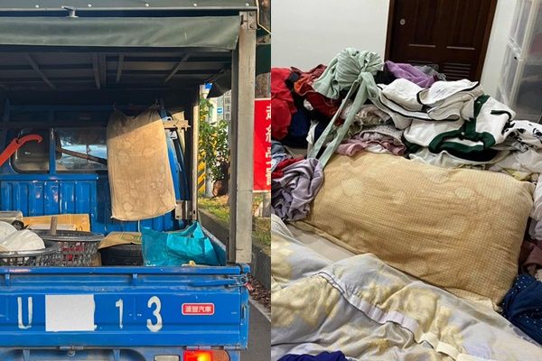 一名網友今在臉書社團「路上觀察學院」PO出照片,只見他在停等紅燈時,發現前方發財車上,竟掛了一個疑似「高嘉瑜的枕頭」,而上面泛黃的髒污更高度相仿。