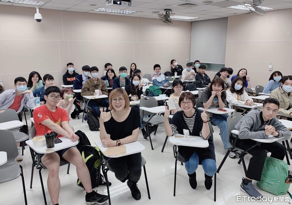 ▲文大副教授姚蘊慧(前排右二)開設的通識課「性別與社會」深受學生喜愛。課程設計要找異性約會、共寫婚姻生活計畫,更引發網友熱議。(圖/姚蘊慧提供)