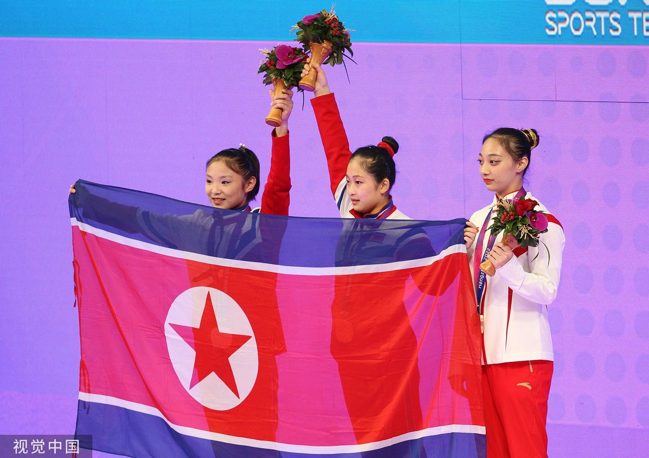 北韓在今年杭州亞運已經奪得7面金牌,而且得主全部都是女性,除了突破「舉重女神」郭婞淳110公斤抓舉紀錄的「異能新星」金日景之外,射擊、體操、舉重也獲得第一名佳績。