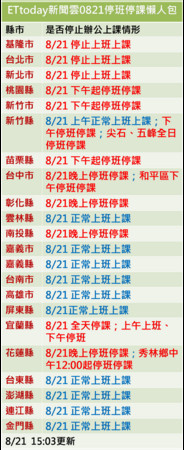 ▲潭美颱風停班停課懶人包(圖/ETtoday製表)