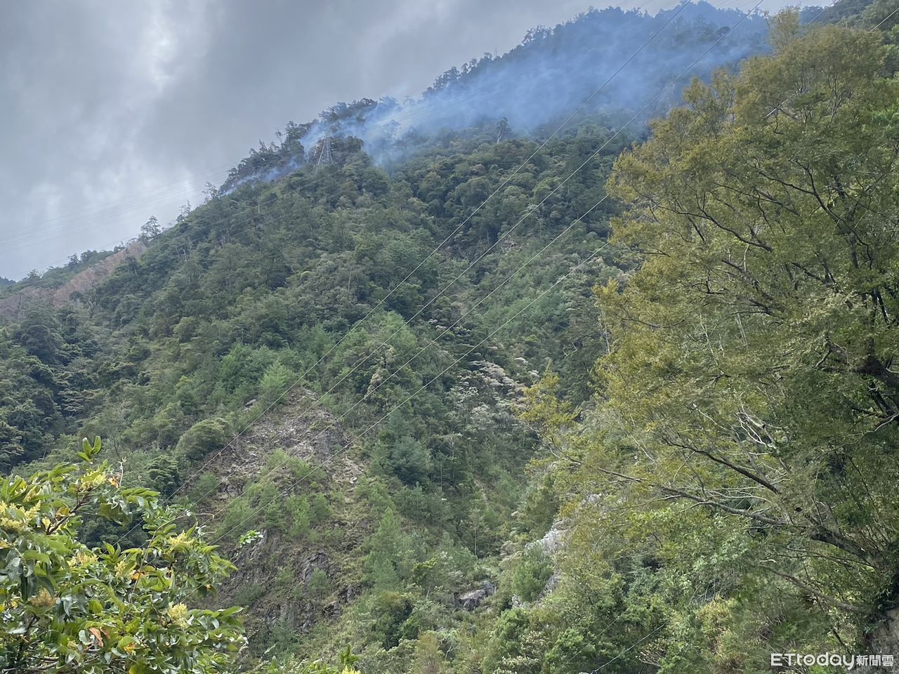 ▲▼今上午10時左右,中橫便道7.2公里處上方林班地冒出濃煙,林業署及消防隊進入搶救。(圖/記者哈勇嘎奧翻攝,下同)