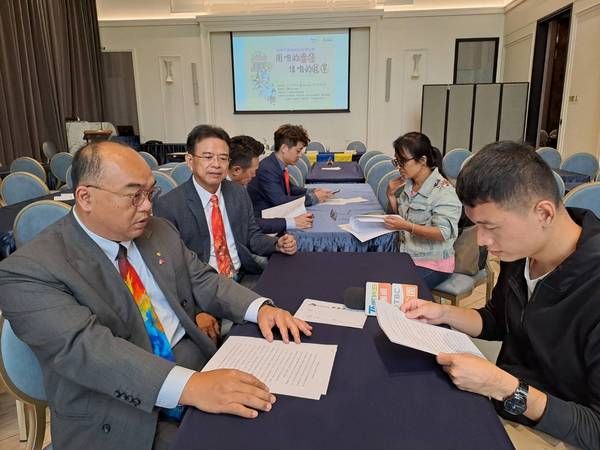 ▲周勤富社長(左一)說明2023桃園市閩南語說故事比賽規劃。(圖/記者楊淑媛攝)
