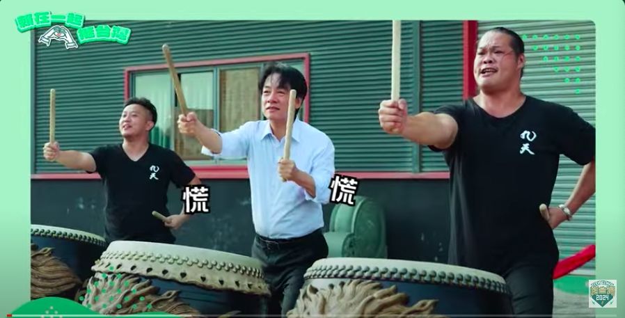民進黨總統參選人賴清德近日赴台中,拜訪也有參與這次國慶典禮演出的台灣陣頭文化代表「九天民俗技藝團」,今(8日)賴清德官方YT頻道釋出《一日陣頭體驗》影片,賴清德應副團長邀約,加入鼓陣練習,打到頭髮都亂了,最後還是不小心「放槍」,讓賴也忍不住笑場、自嘲慢了好幾拍。