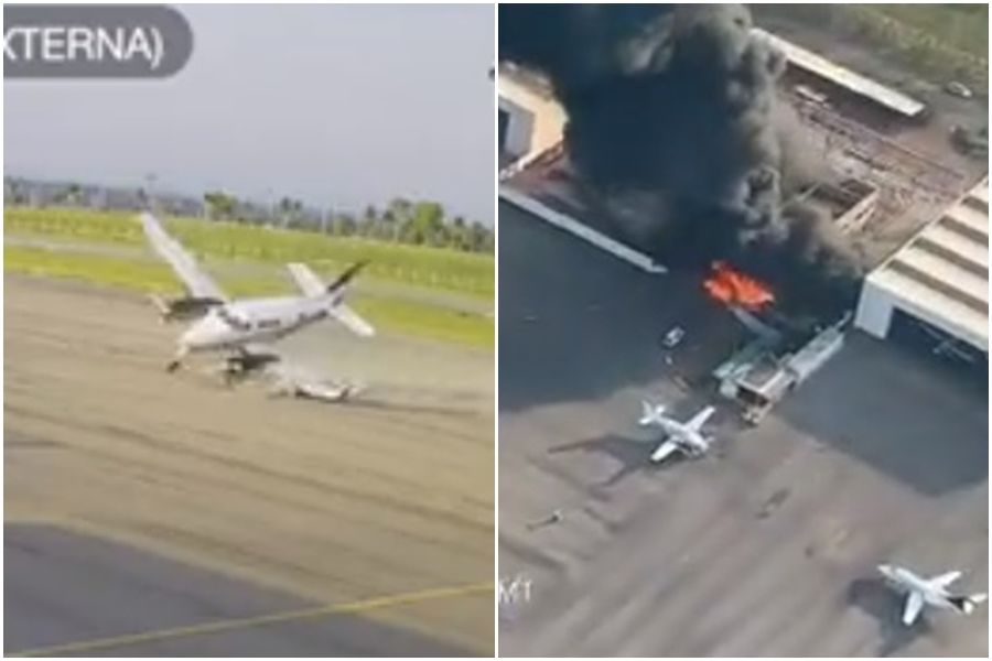 綜合《鏡報》等外媒,這起事件4日發生於庫亞巴市,一架Beechcraft King Air渦輪螺旋槳飛機起飛時顯然有一顆引擎失去動力,影片中可見機身嚴重側翻,機翼幾乎和地面呈90度,擦撞地面斷裂,完全墜地後直直向前衝,撞進機庫並炸出火球,飛機頓時被火焰和濃煙吞沒。