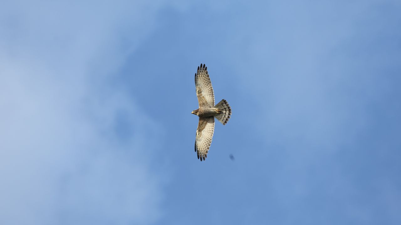 灰面鵟鷹屬春秋過境鳥,主要分布於東亞地區,台灣位於其遷徙的重要路線上,因在國慶日前後過境,故又有國慶鳥的美稱,田寮洋10月也可發現它的蹤跡。近年新北市農業局為支持地方農業發展,也讓遠道而來的遷徙鳥類有棲地可用,與農業部林業及自然保育署合作,透過國土生態綠網支持田寮洋的水鳥棲地保育。
