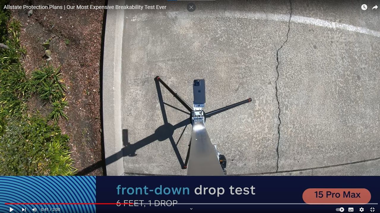 ▲iPhone 15 Pro Max摔落測試。(圖/翻攝Allstate Protection Plans公開畫面)