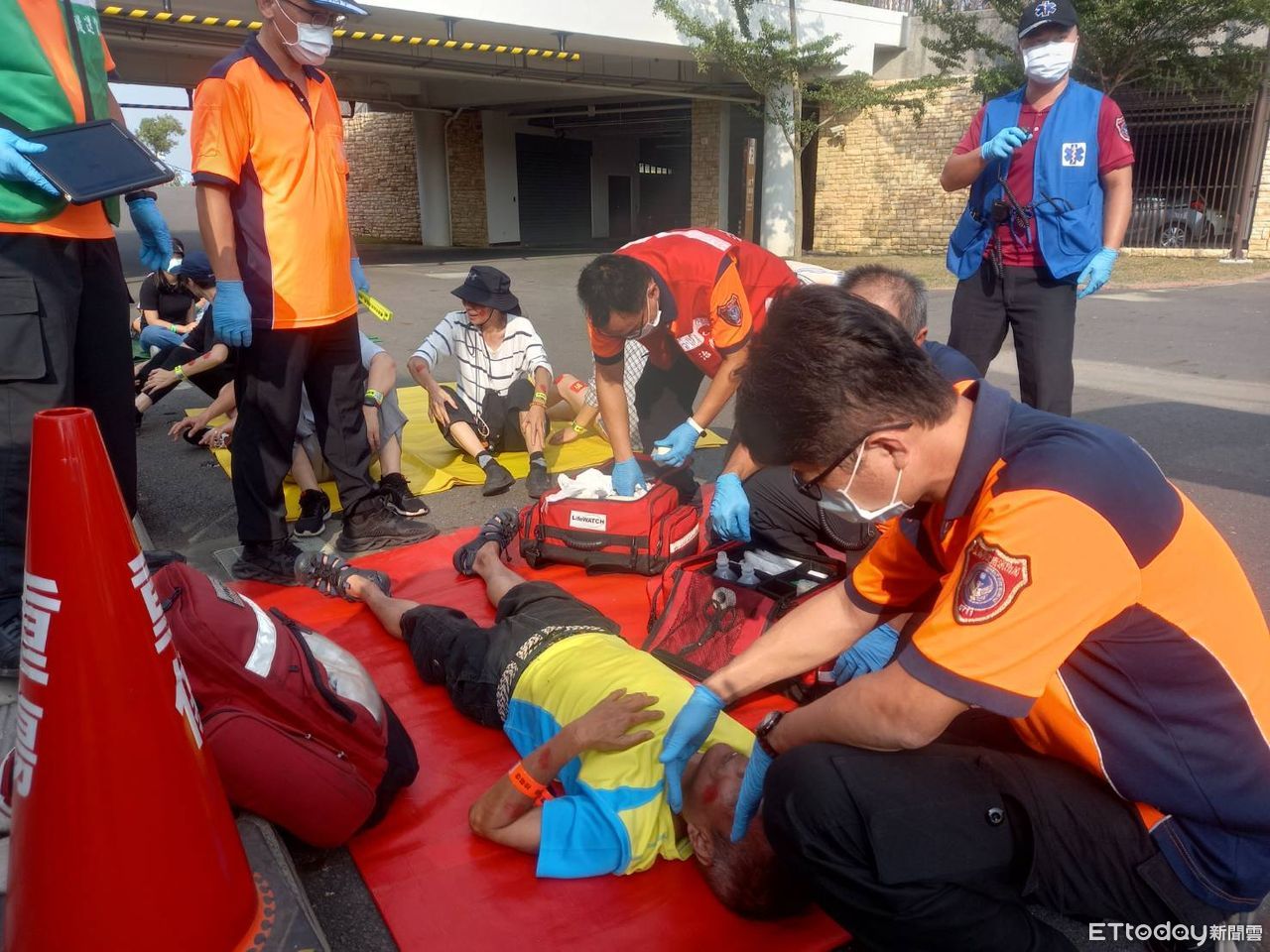 ▲台南市消防局二大隊為提高對突發蜂蜇事故的處理應變能力,11日與西拉雅風景區管理處成功進行了一次模擬蜂蜇事故大量傷病患搶救演練。(圖/記者林東良翻攝,下同)