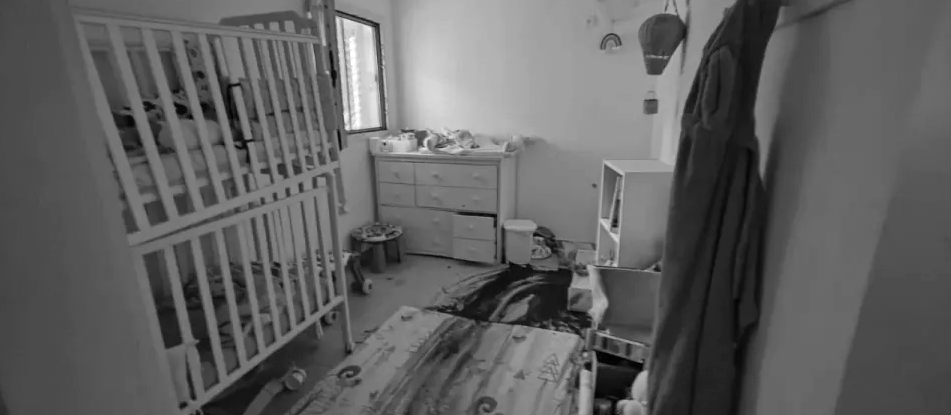 ▲以色列邊境城鎮遭哈瑪斯侵略,救難人員拍攝到育嬰室血淋淋的相片,畫面已經灰階處理。(圖/南方第一救難隊,下同)
