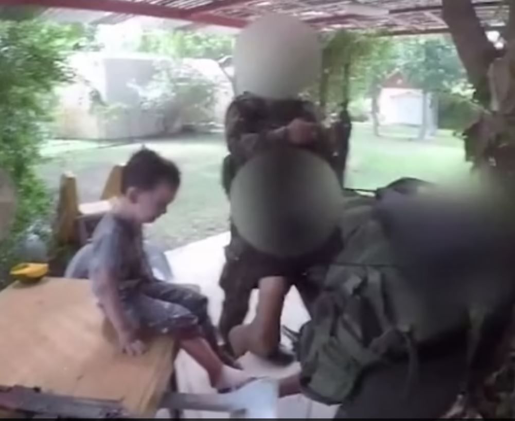 影片中的所有哈瑪斯武裝分子都被打上了馬賽克,唯有孩子的臉清楚露出。事實上,聯合國將綁架兒童列為戰爭罪行為。