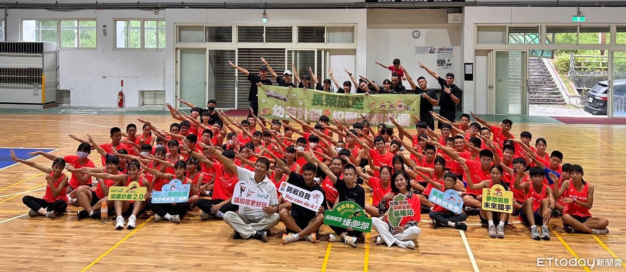 ▲長榮航空城市觀光馬拉松「幼苗計畫-校園深耕巡迴」前進基隆,由基隆市副市長邱佩琳(第1排右1)和長榮航空協理林玄修(右2)主持。(圖/長榮)