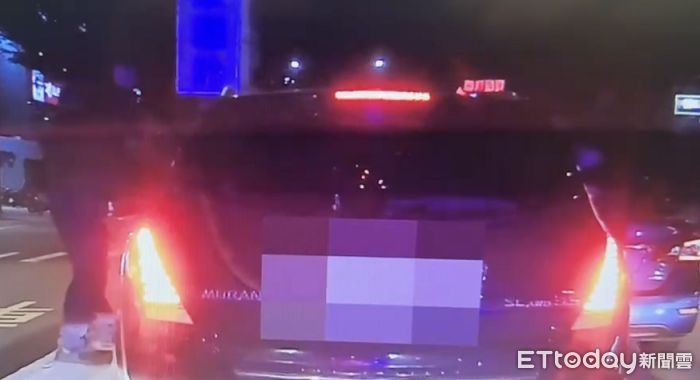 ▲自小客車違停機車待轉區,員警欲上前勸導,小客車卻加速逃逸。(圖/記者楊熾興翻攝)