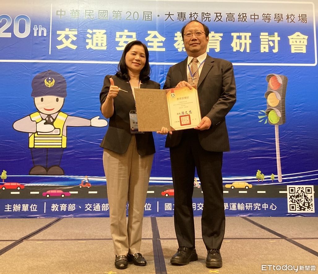 ▲中華醫大榮獲交通安全教育特優學校殊榮,孫逸民校長(右)代表接受教育司李毓娟司長頒獎。(圖/記者林東良翻攝)