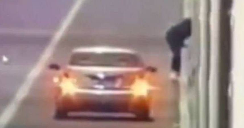 ▲男子把自己的雙腳綁起來,然後縱身跳入橋下。(圖/翻攝自微博)